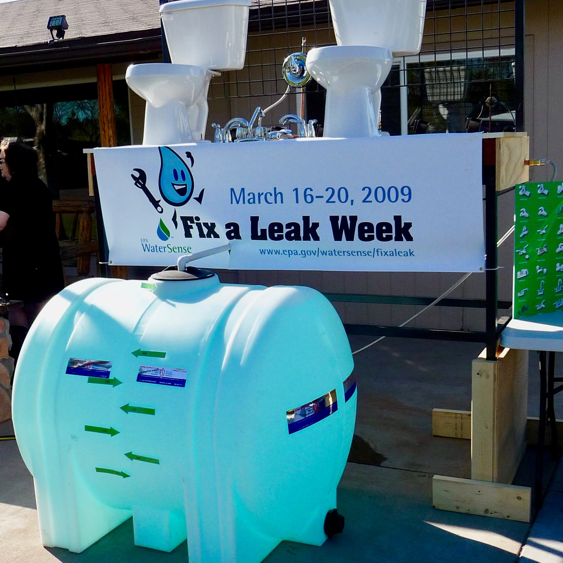 EPA launched its national Fix a Leak Week campaign in a Phoenix driveway. EPA and its partners - Arizona Department of Water Resources, City of Phoenix and Ferguson, a bath, kitchen and lighting retailer - set up a demonstration project in front of a family home to show how much water is lost due to leaky plumbing fixtures. The display included two toilets, two faucets, and a showerhead, each slowly dripping. Over the course of the seven days, the fixtures leaked more than 200 gallons of water. By 2010, 26 cities around the country held Fix a Leak Week events. Some cities offered free workshops to find and fix leaks and others mailed leak detection kits to homeowners. Before AMWUA created its Smart Home Water Guide , it marked Fix a Leak Week with an annual One for Water 4-Miler Race around Rio Vista Community Park in the City of Peoria.