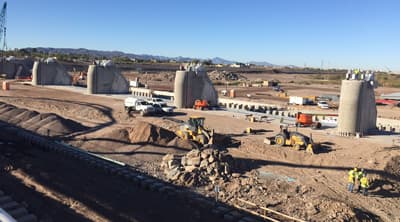 Like any public works project, the new dam had its challenges. The groundwater is close to the surface in the Salt River bed. Twenty dewatering wells had to be built to remove water from the foundation site, move it to a pond and, eventually, feed it to the riparian habitat on the west side of Tempe Town Lake. A record rain in 2014 dumped 5.6 inches on some parts of Tempe and runoff from the storm wiped out the initial excavation work for the dam’s foundation. Granite was closer to the surface than expected at two points in the dam site making building the foundation more time consuming than expected.