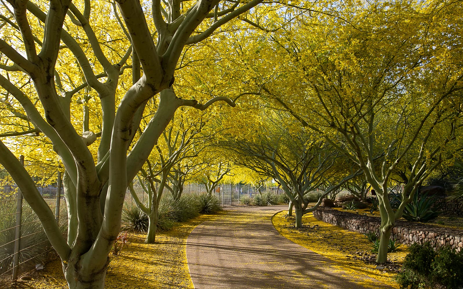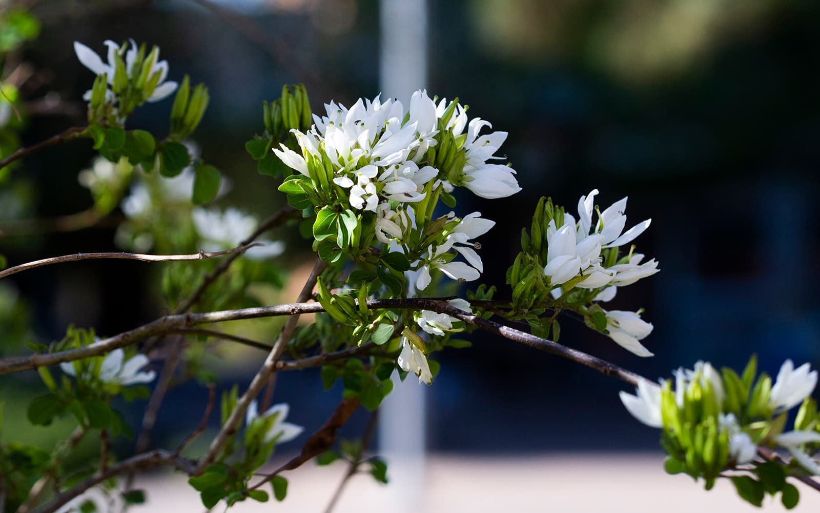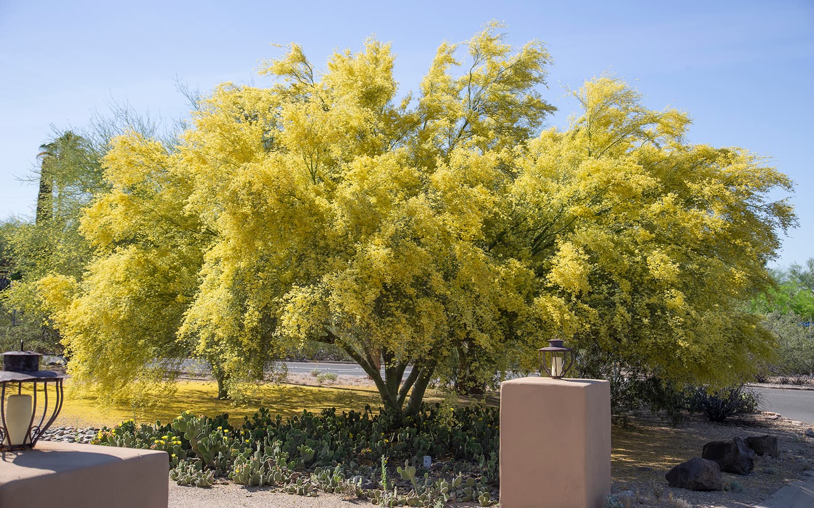 Trees tend to be the “backbone” of the landscape since they are more prominent in scale, permanent, and visible year-round while bringing a variety of seedpods, flowers, and colors. Trees also provide shelter and food for birds and wildlife. Trees can help decrease heating and cooling costs for your home. Locate trees to shade your home’s east- and west-facing exposures during the summer. Deciduous trees allow sunlight into the house during the winter when branches are bare of leaves. Selecting the right tree for the right place is important. When considering their placement, be sure the mature tree will fit safely into your yard without interfering with overhead power lines, underground utilities, buildings or fences, and walkways.