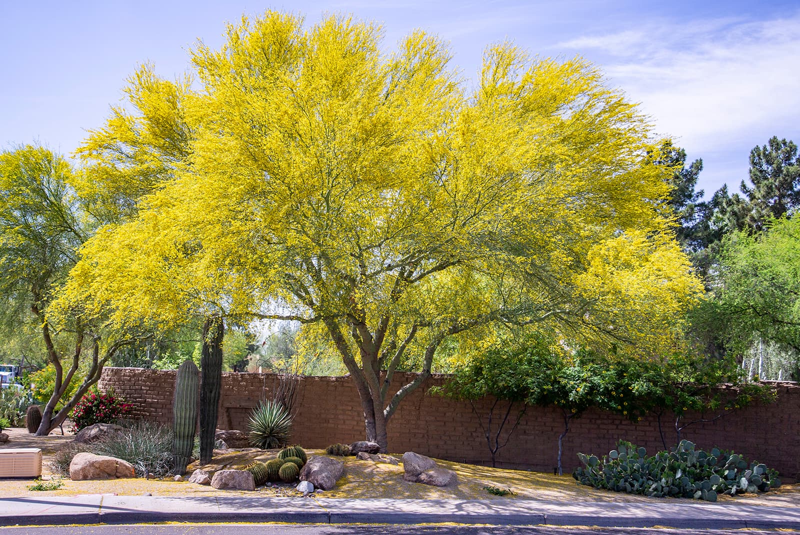 Offers vivid spring color from a full canopy of yellow blooms. Provides seed and cover to birds and other wildlife. Previously classified as Cercidium floridum.