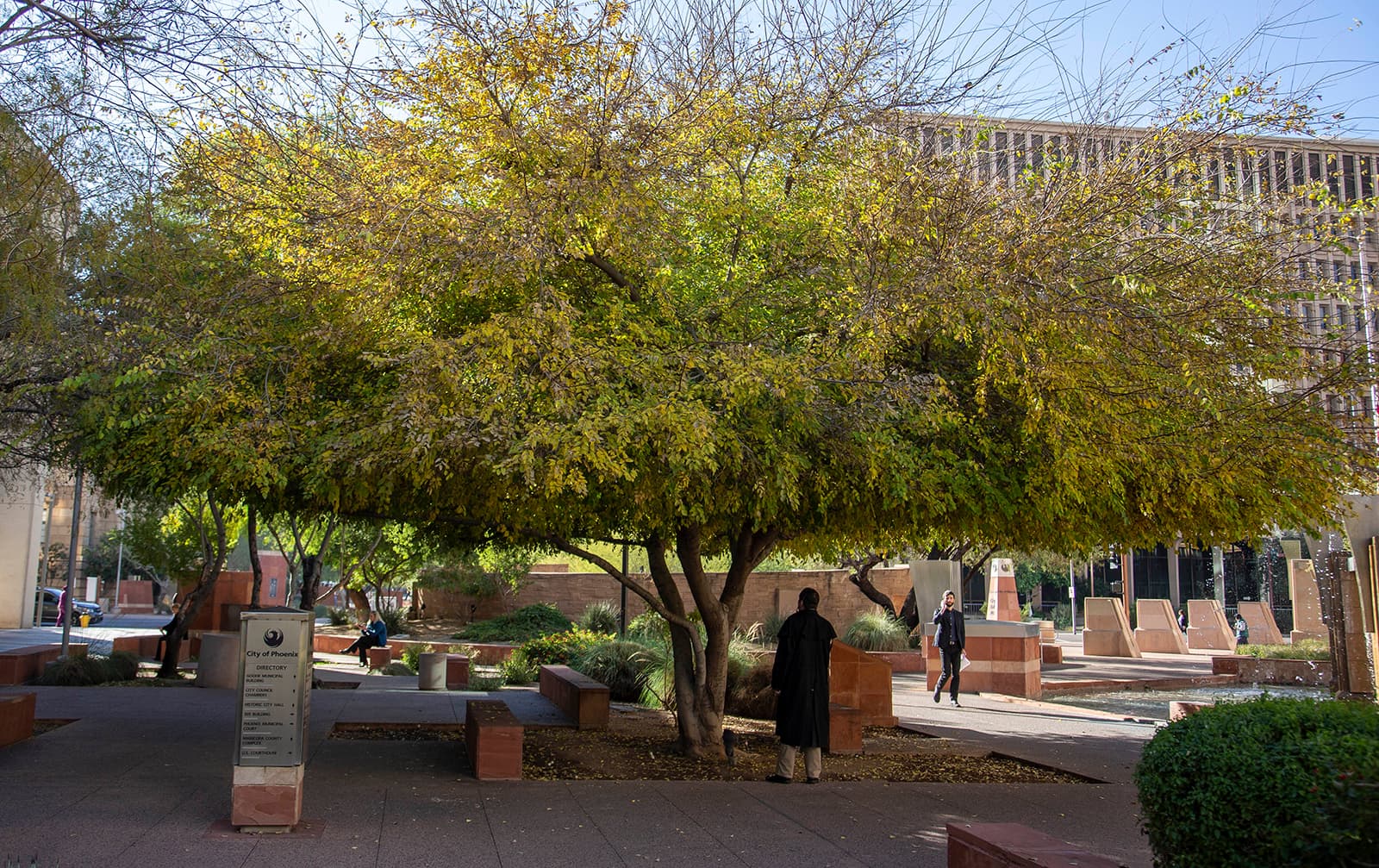 Has a distinctive trunk. Birds relish its tiny orange berries. Provides food and shelter for wildlife.