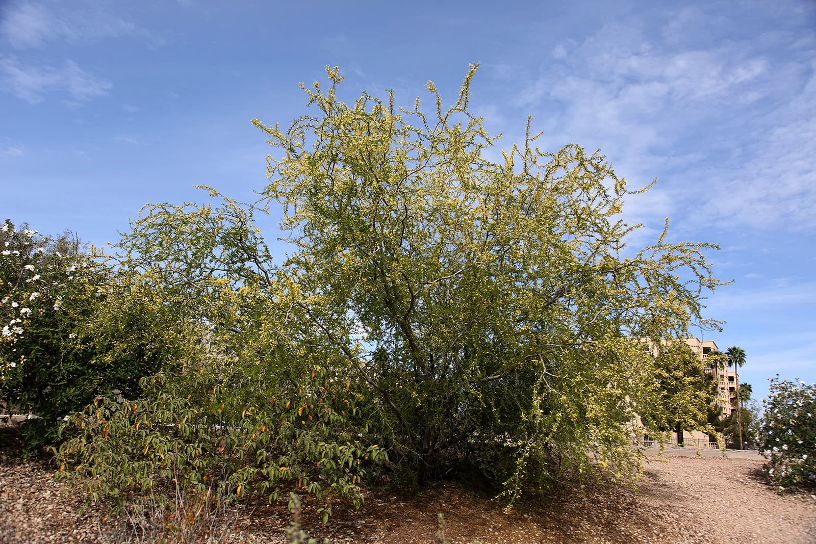 Effective as a barrier. Boasts attractive light gray bark. Previously classified as Acacia rigidula.