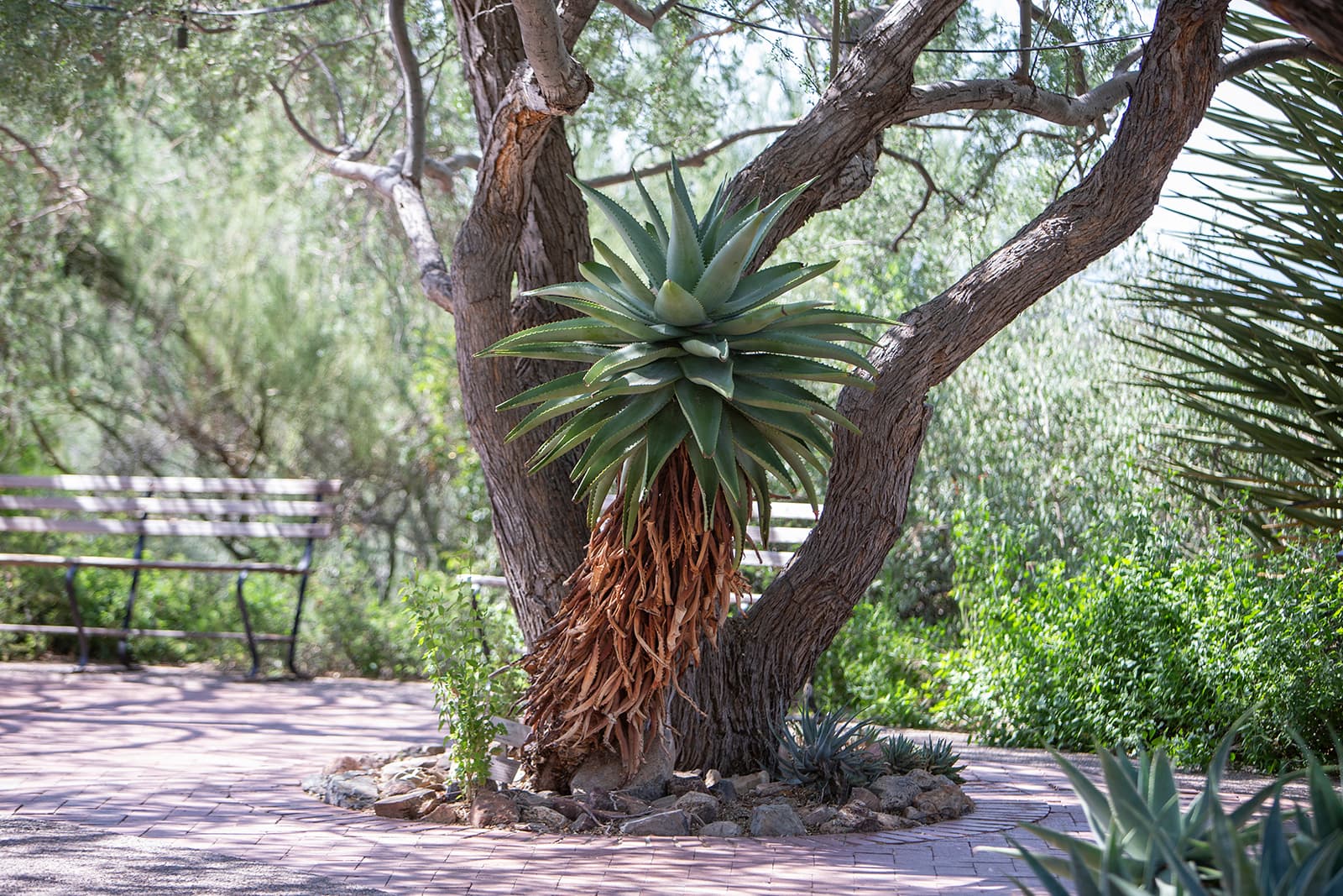 Showy candelabra-shaped flower spikes attract hummingbirds. Provides an "oasis" feel. Also try A. marlothii and Aloidendron dichotomum .