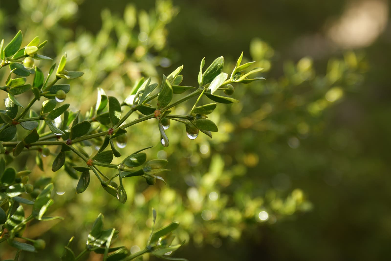 Good for naturalistic landscapes and can serve as an informal screen. Distinctively fragrant foliage after rain. Provides food and shelter for wildlife. May be sold as L. divaricata.