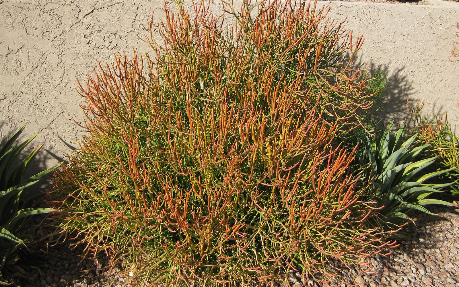 Unique accent. Light to medium green stems in summer, turning orange and red during winter months. Somewhat frost sensitive. Sap is toxic and can irritate skin.