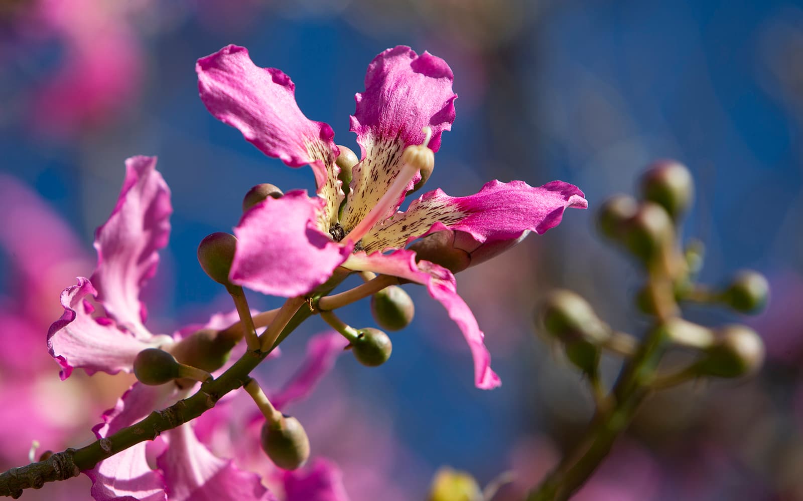 Distinctive trunk and puts on a spectacular show of flowers in the fall. Look for selections that offer a variety of flower colors. Previously classified as Chorisia speciosa.