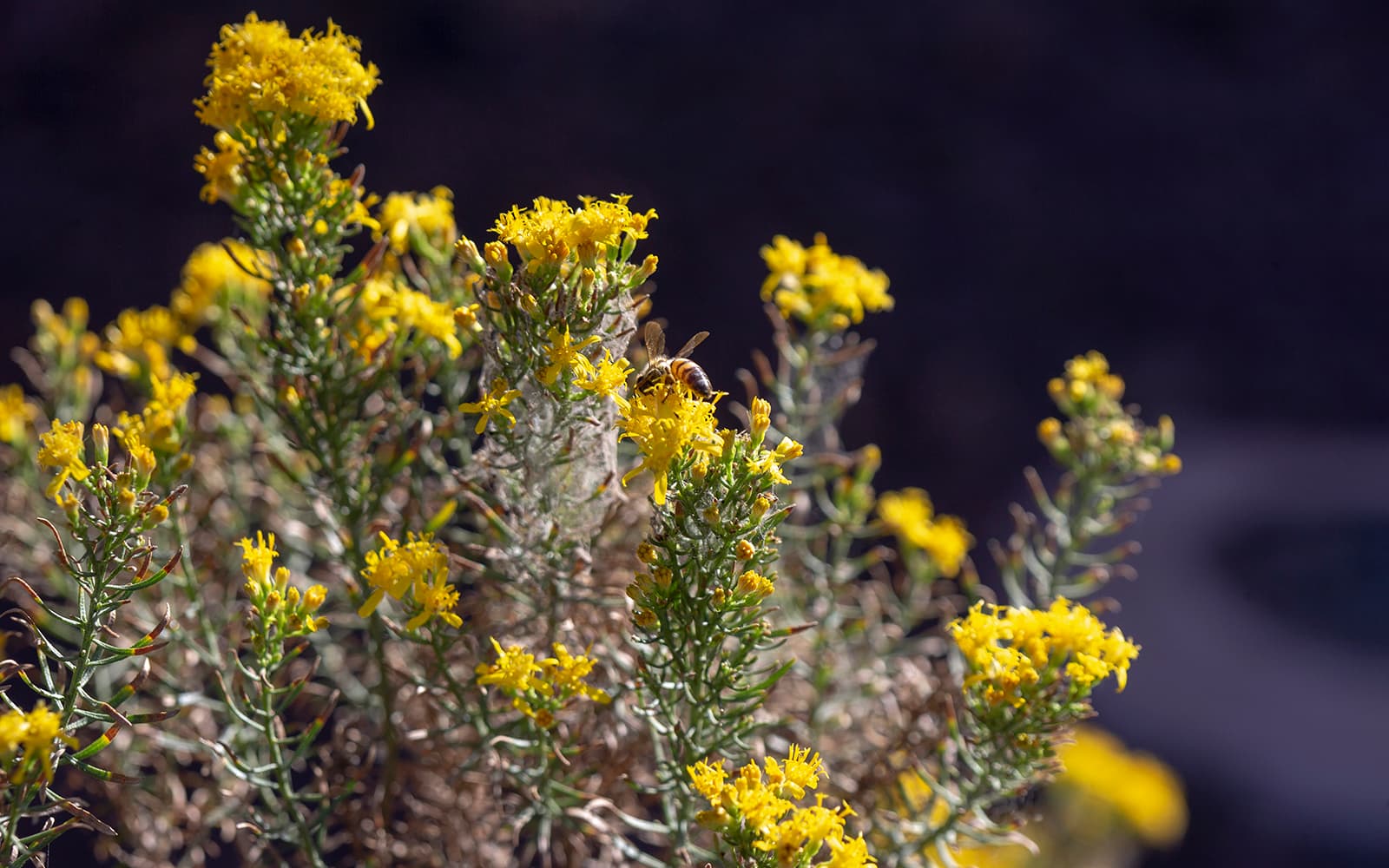 Fragrant foliage. Provides food and shelter for wildlife. May be sold as Haplopappus laricifolius.